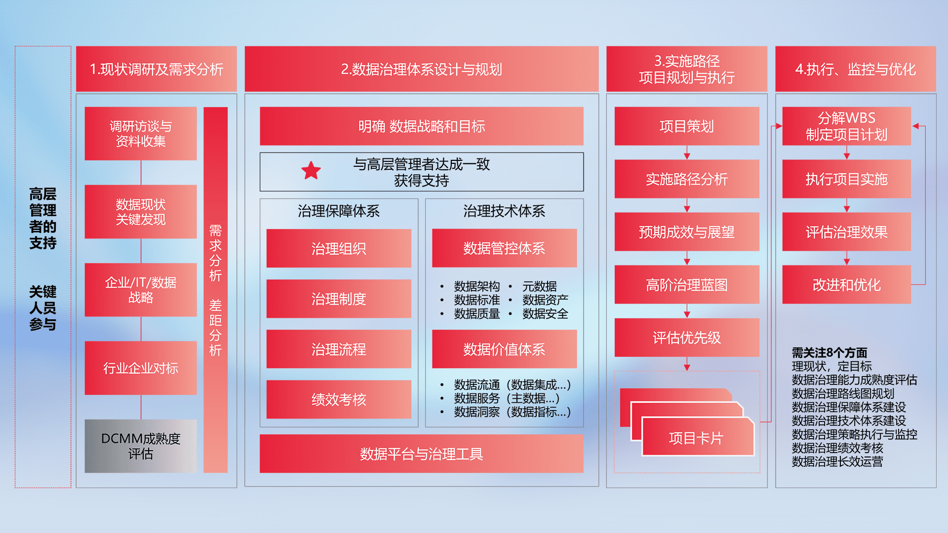 制定并执行统一的数据标准,,,,规范数据定义和格式,,消除冗余和不一致性,,,,实现跨部门和跨系统的数据一致性,,,,为企业提供标准化的数据基础。。。